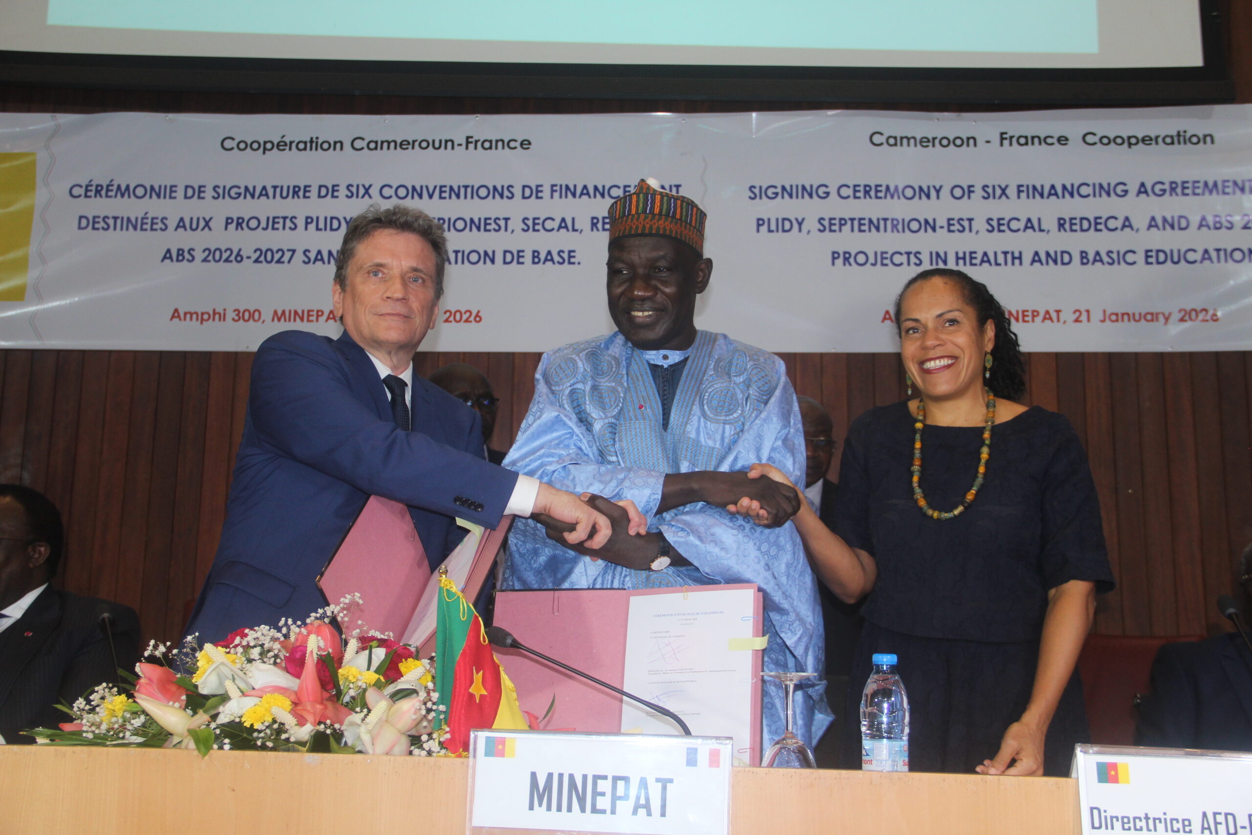 The agreement was finalized on January 21 in Yaounde, with Alamine Ousmane Mey, Cameroon’s Minister of Economy, Planning and Regional Development (MINEPAT), and French Ambassador to Cameroon, Sylvain Riquier, signing the documents. Virginie Dago, Director of the French Development Agency (AFD) also signed the documents in the presence of several Cameroonian cabinet Ministers.