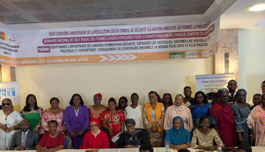 The Cameroon chapter of the African Women Leaders Network (AWLN) made this powerful proposition at a High-Level National Seminar in Yaoundé. Held at the Djeuga Palace Hotel, the seminar was themed, “Reaffirming the Importance of the Women, Peace and Security Agenda: Overcoming Obstacles, Assuming New Political Ambition and Realising the Commitment to Build a More Just and Peaceful World Together.” It was chaired by the Minister of Women’s Empowerment and the Family, Professor Marie Thérèse Abena Ondoua.